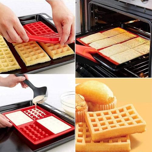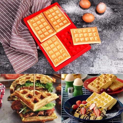 Generic - قالب وافل سيليكون بتصميم مربع بـ4 تجاويف، صينية خبز غير لاصقة للفرن والميكروويف والثلاجة - لون أحمر