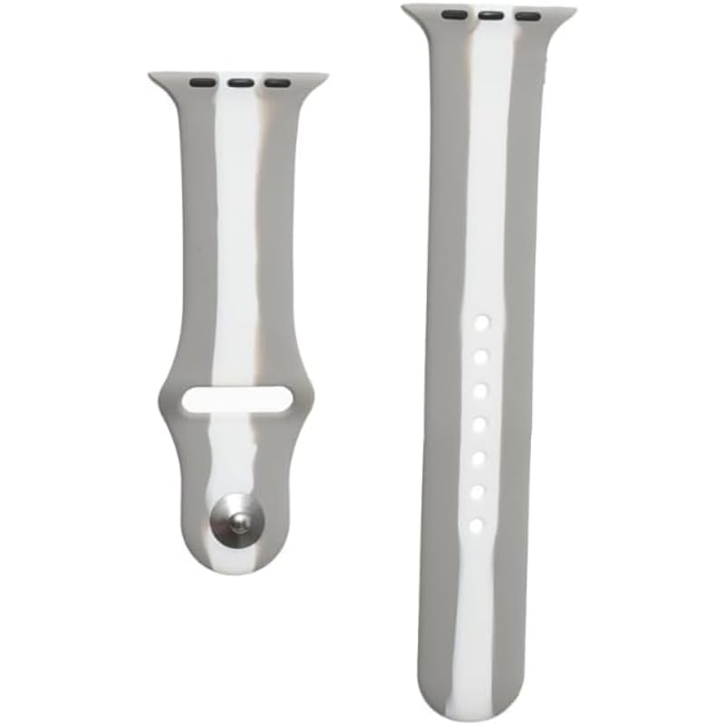 Generic - سوار ساعة بديل مقاوم للماء من السيليكون بتصميم مخطط ناعم ومريح متوافق مع الساعات الذكية مقاس 38/40/41 ملم - رمادي أبيض