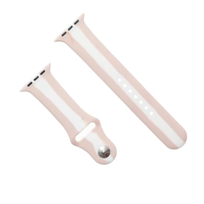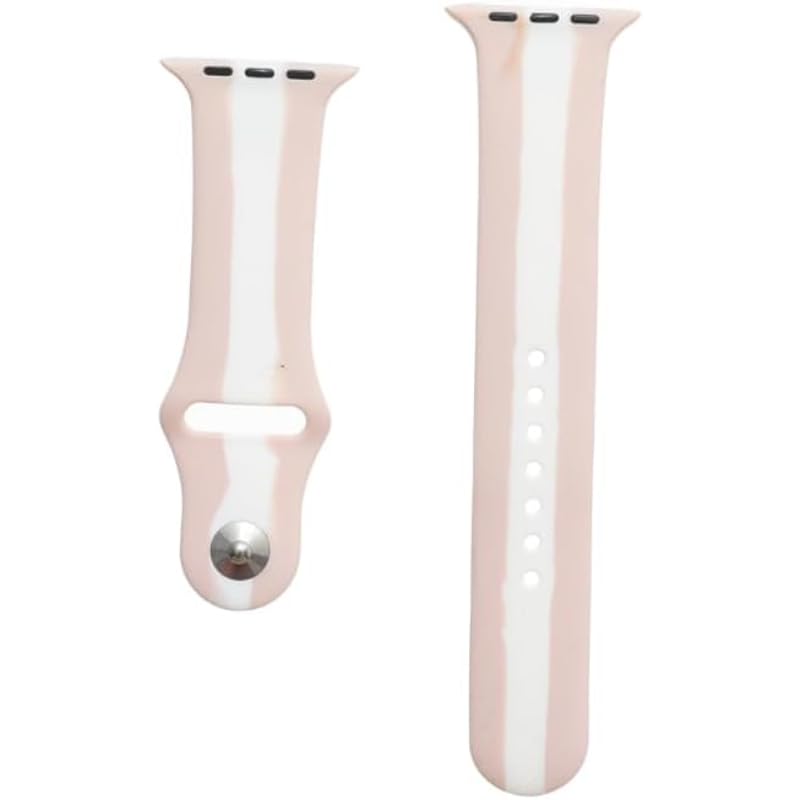 Generic - سوار ساعة بديل مقاوم للماء من السيليكون بتصميم مخطط ناعم ومريح، متوافق مع الساعات الذكية مقاس 38/40/41 ملم، وردي وأبيض