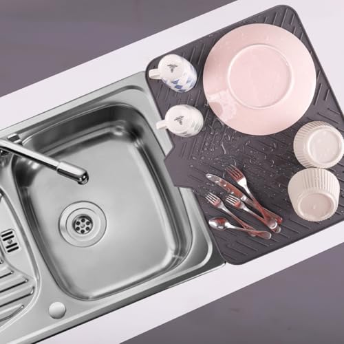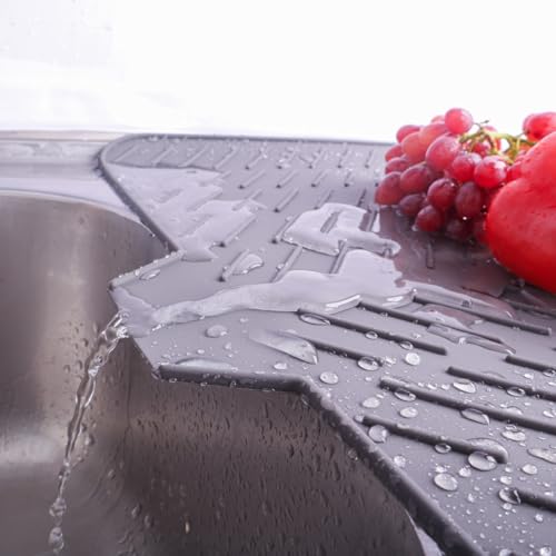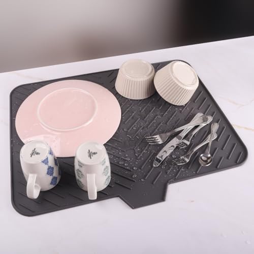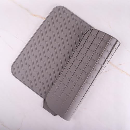 SilicoTech - بساط تجفيف أطباق سيليكون وحامل للأواني الساخنة مقاوم للحرارة من سيليكون تك، 54 × 40 سم، رمادي