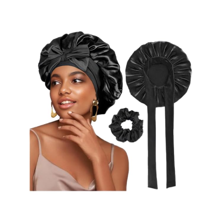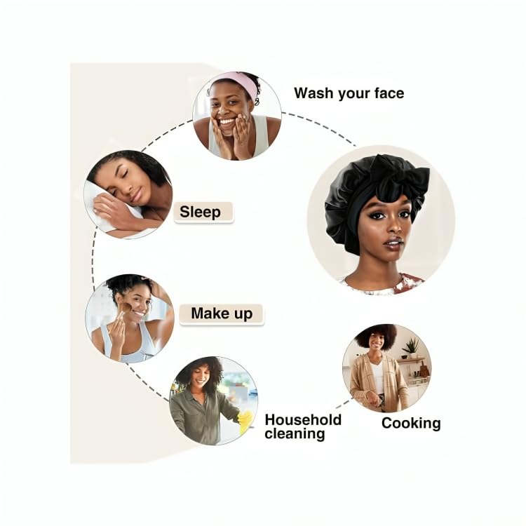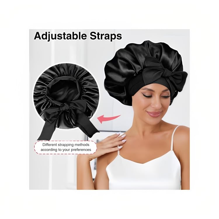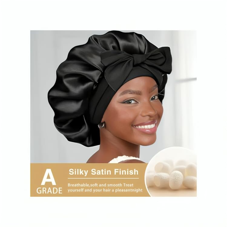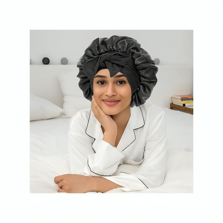 Generic - بونيه حريري باللون الأسود، مصنوع من الحرير للجنسين، بتصميم قلنسوة مع توكة ساتان