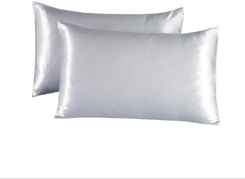 Generic - وسائد سرير حريرية ساتان، طقم من ٢ قطعة، لون فضي رمادي