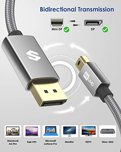 Silkland - كابل منفذ عرض صغير إلى منفذ عرض، 4K عند 60Hz و2K عند 165Hz و144Hz و1080P عند 240Hz، كابل منفذ عرض ميني/ثاندربولت 2 إلى منفذ عرض 1.2 متوافق مع ماك بوك اير/برو، سيرفس برو/دوك وغيرها من سيلك لاند، مترين