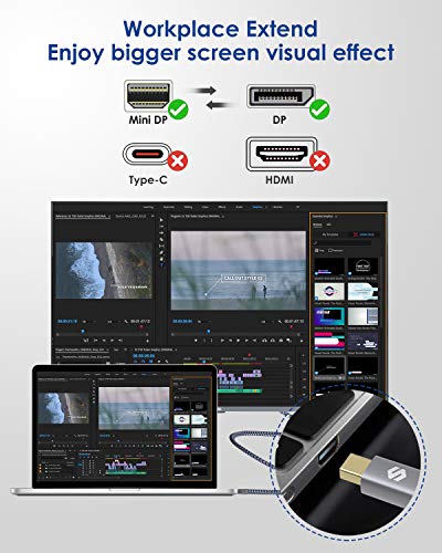 - توافق دقيق: مثالي للأجهزة التي تدعم منفذ عرض صغير/ثاندربولت 2: ماك بوك اير (قبل 2018)، ماك بوك برو (قبل 2016)، اي ماك (قبل 2017)، مايكروسوفت سيرفس برو لاينيب، لاب توب سيرفس، وأي أجهزة لابتوب أخرى مع مخرج منفذ عرض صغير، بالإضافة إلى جهاز كمبيوتر مكتبي/لاب توب مجهز بمنفذ عرض (وليس HDMI).