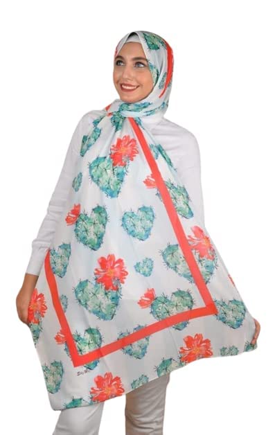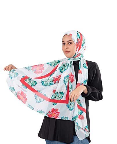 Generic - سكارف من سيلكي واي كريب ابيض واخضر واحمر 200 سم ×75 سم- 00109, أبيض وأخضر وأحمر, 200 cm*75 cm