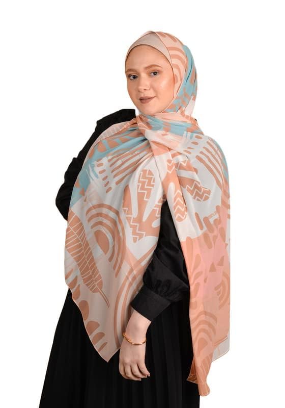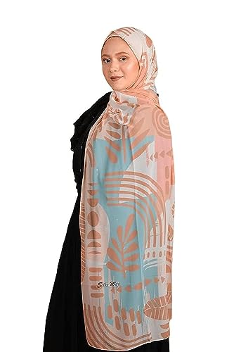 Generic - سكارف حجاب من شيفون كريب للنساء موديل (SW-00045) لون بيج نود واخضر مينت من سيلكي واي, cm*75