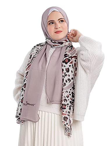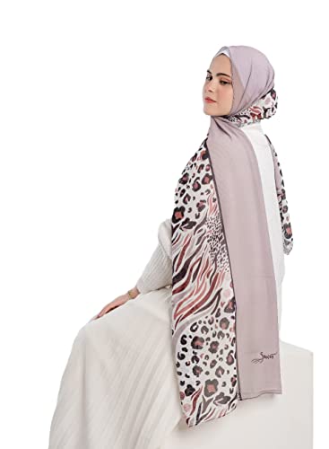 Generic - شال شيفون للحجاب للنساء ابيض وكافي واسود من سيلكي واي سكارف SW-00187, cm*75