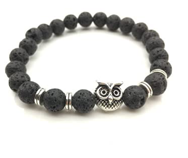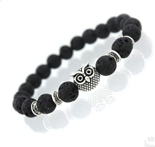 Other - سوار من العقيق الطبيعي مزين برأس بومة، يتناسب مع جميع الملابس، لكل الجنسين، فضي