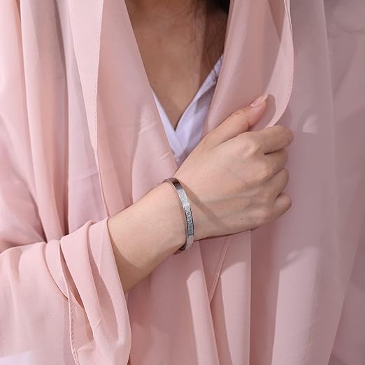 Generic - أساور فضية بتصميم آية الكرسي بخط عربي مصنوعة من الفولاذ المقاوم للصدأ 316، قابلة للتعديل مناسبة كهدايا إسلامية للجنسين للارتداء اليومي