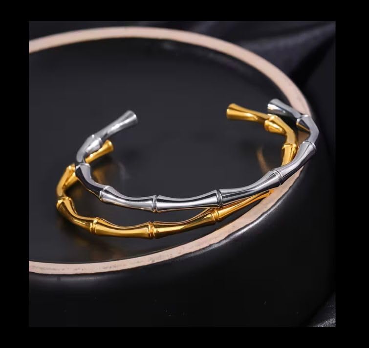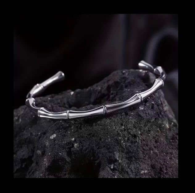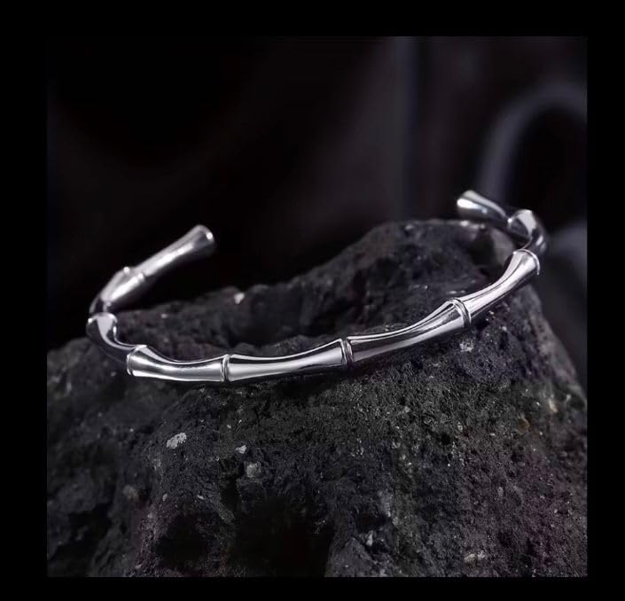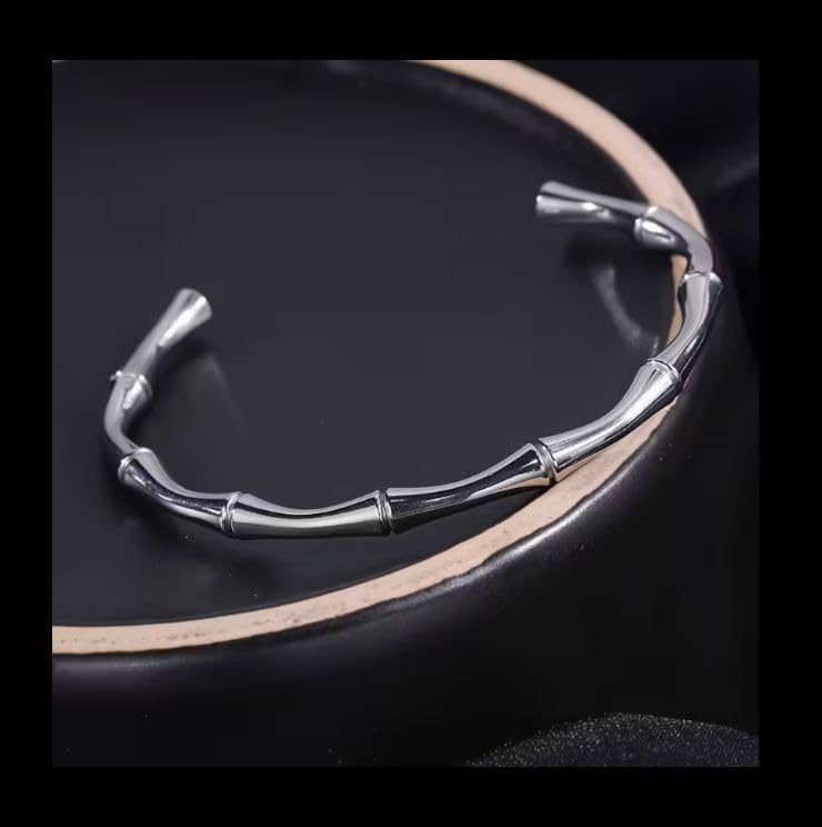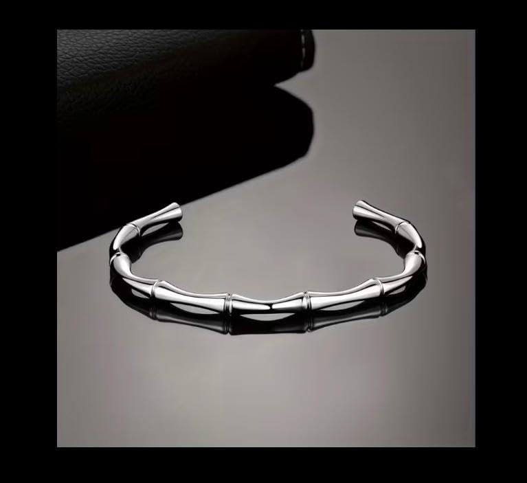 Generic - سوار بامبو فضي، فولاذ مقاوم للصدأ، تصميم عصري أنيق، إكسسوار راقٍ للرجال والنساء