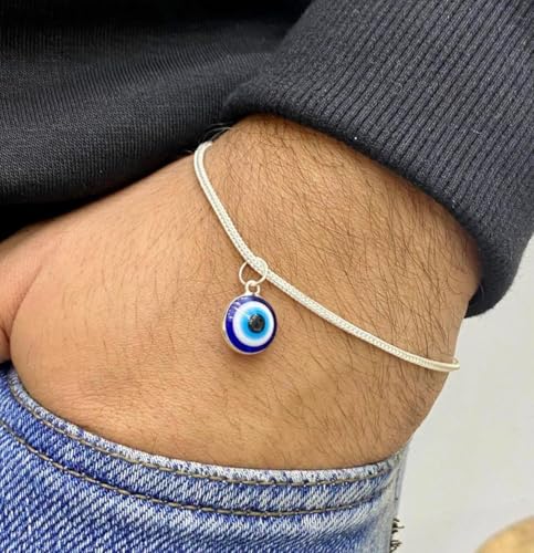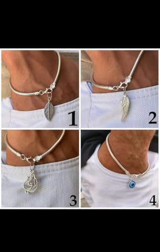 Generic - سوار فضي مع قلادة عين الحسد الزرقاء، حلي فضي مع تصميم ثعبان، مجوهرات للنساء والرجال