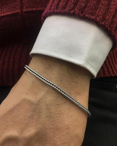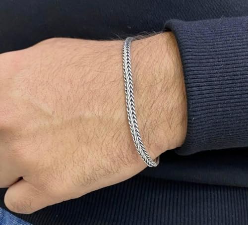 Generic - إسورة رجالية مصنوعة من الفضة الإسترلينية، بلون فضي وتصميم مجدول، مقاس 20