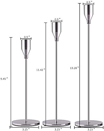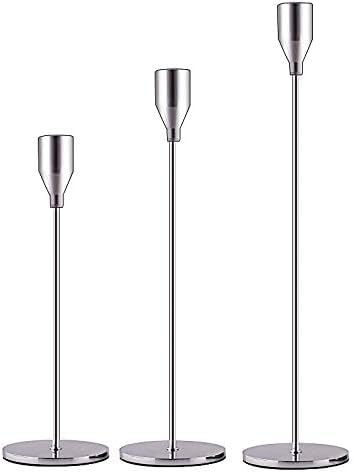 Generic - مجموعة شمعدانات فضة لحمل شموع مدببة من فلامنجو، شمعدانات ديكور لحفلات الزفاف وموائد العشاء والمناسبات، تناسب الشموع السميكة مقاس 1.9 سم أو LED، 3 قطع (حامل شموع معدني)