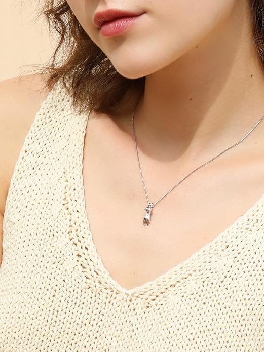 fashion mania - قلادة فضية على شكل قطة - مجوهرات قطة للنساء، هدايا للبنات