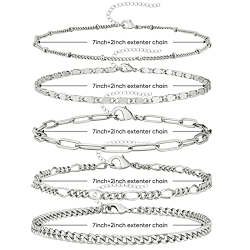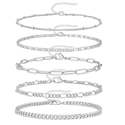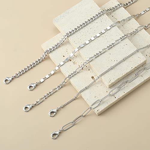 generic - مجموعة أساور سلاسل فضية للنساء، مجموعة أساور سلاسل أنيقة عصرية مطلية بالفضة للنساء
