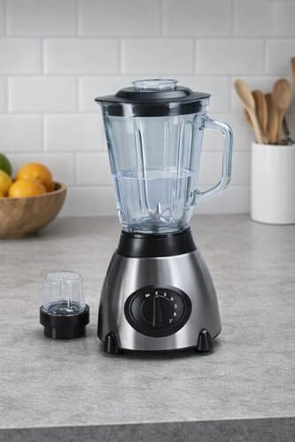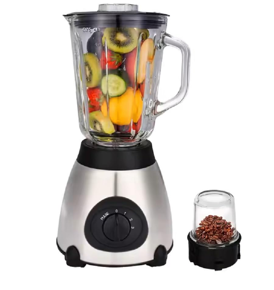- سعة الدورق: يأتي مع دورق زجاجي بسعة 1.5 لتر مثالي لتحضير العصائر والمشروبات للعائلة، مع تصميم شفاف لمراقبة عملية الخلط
