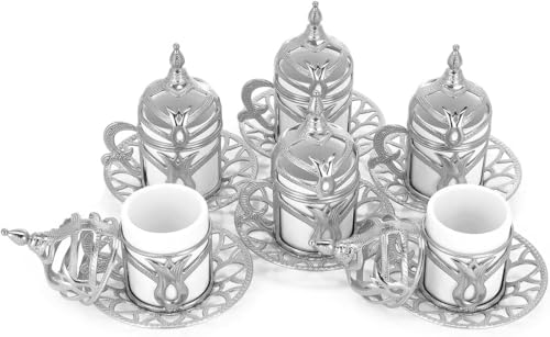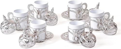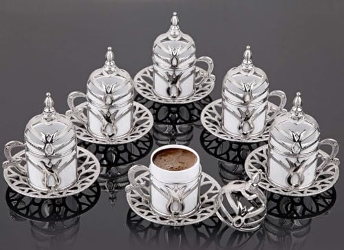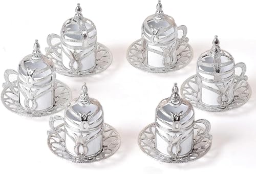 Home and Kitchen Art - طقم قهوة اقتصادي فضي عدد 12 قطع( 6 فنجان بالغطاء والحامل + 6 طبق للفنجان) سعة 60 ملى لتر H&k Art