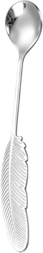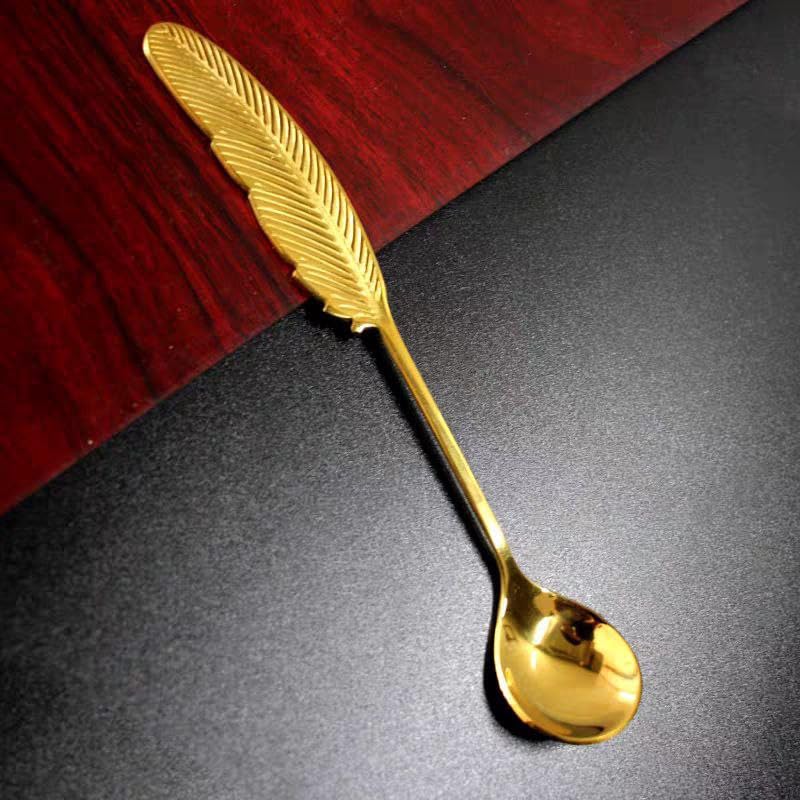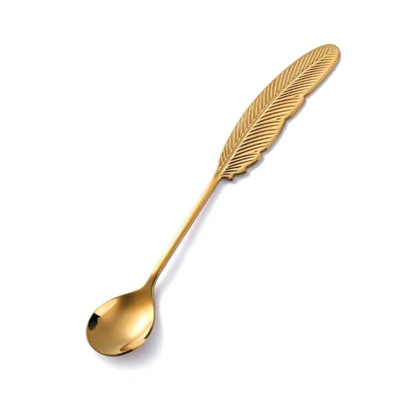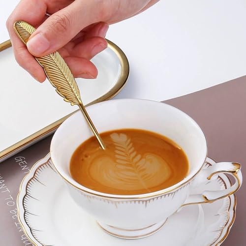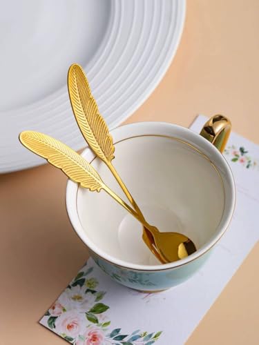 Generic - ملاعق قهوة بتصميم ريشة فضية، مجموعة من ٦ قطع، ستانلس ستيل (6 قطعه بالون ذهبي)