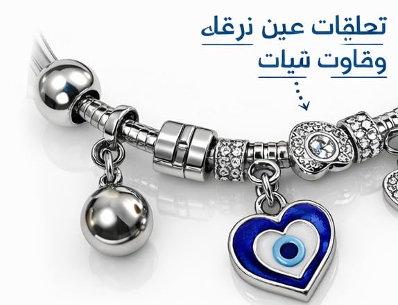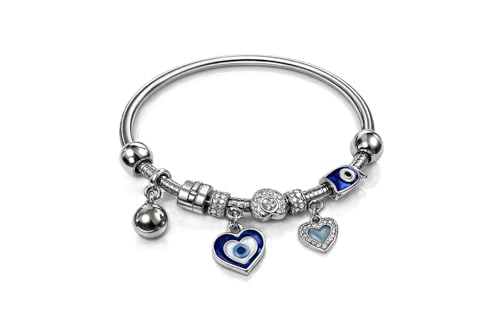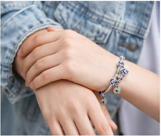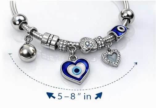 Generic - Silver Girls Charm Bracelet with Blue Evil Eye & Heart Pendants - Trendy Style - Girls Accessories for Gifts and Daily Use