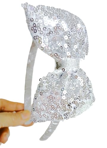 Generic - طوق شعر فضى لامع فيونكة للبنات والفتيات الصغيرات مناسب للحفلات والمهرجانات, عصابة رأس للأطفال