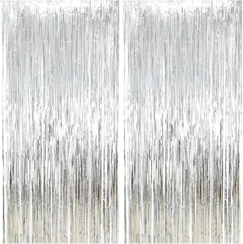 Generic - ستارة فضية لامعة للحفلات مع تصميم شرائط متدلية، 100 سم × 200 سم، خلفية للتصوير والديكور