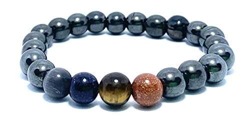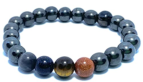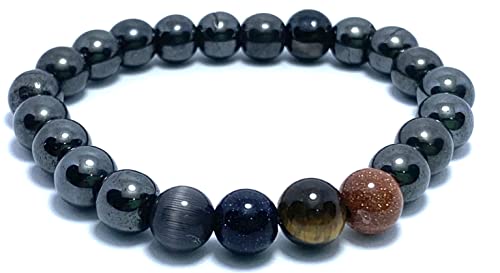 Generic - حظاظه من عده احجار كريمه الهيماتايت الفضي وعين القط الرمادي وحجر النجومي الكحولي والهافان النمر البني فضة استرلينية للنساء