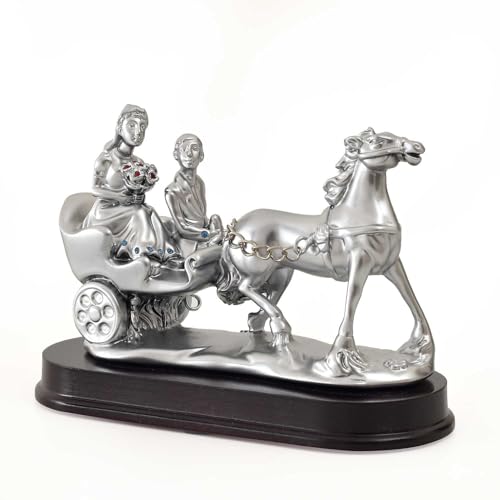Generic - تمثال عربة الحصان الفضي مصنوع من البورسلين الفاخر، بتصميم كلاسيكي أنيق يناسب ديكور المنزل. تحفة فنية رائعة تناسب الطاولات، الرفوف، والمداخل، تضفي جوًا من الفخامة والرقي.