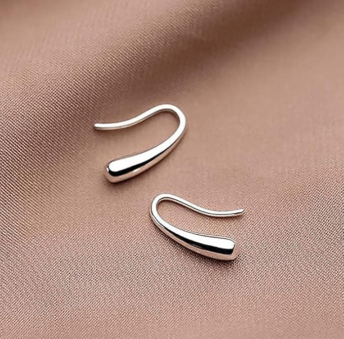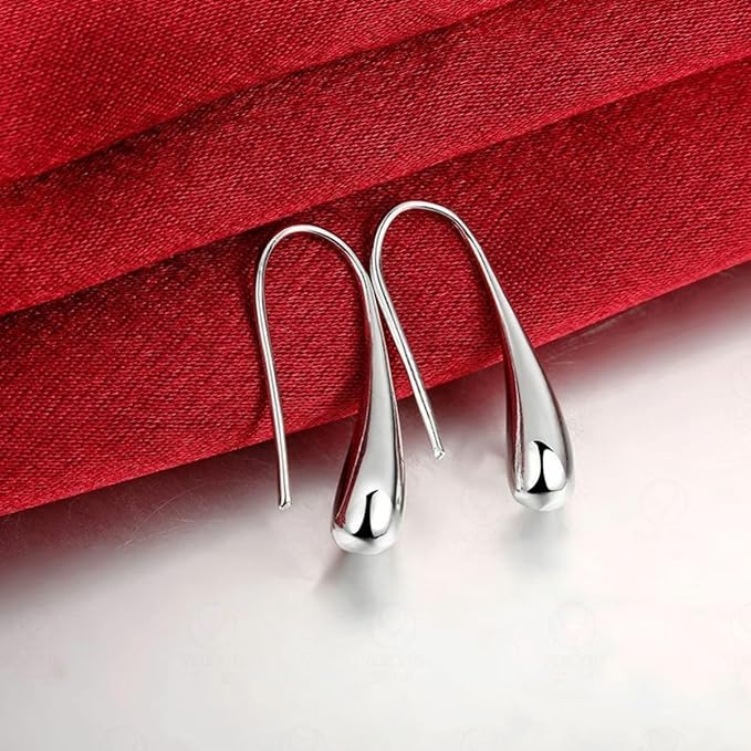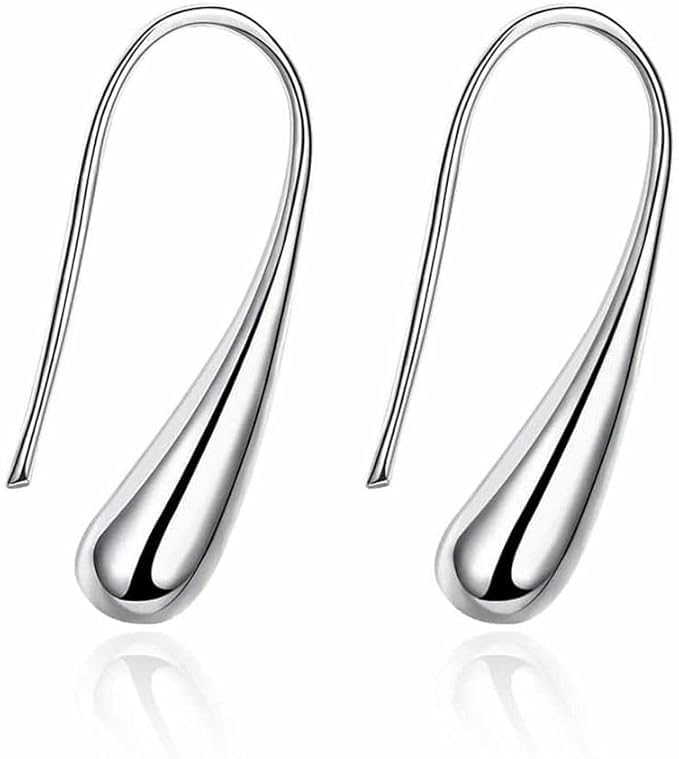 GQ - اقراط فضية بسيطة على شكل قطرة ماء للنساء والفتيات متدلية دمعة