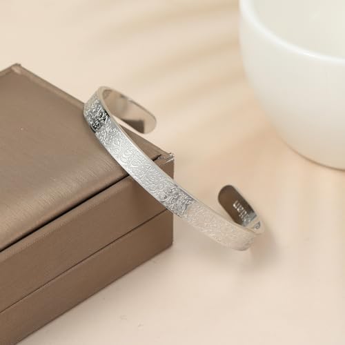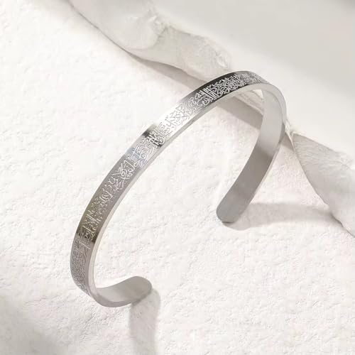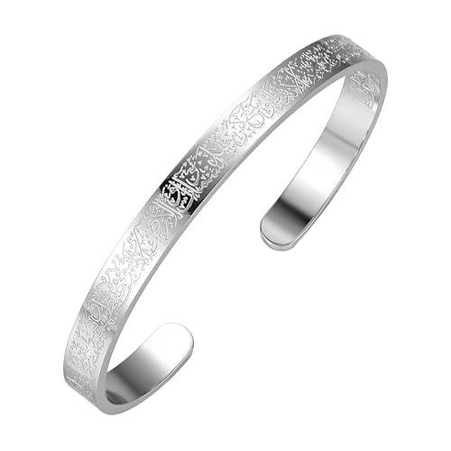 Generic - سوار عريض فضي من الفولاذ المقاوم للصدأ بتصميم محفور عليه سورة ياسين، مجوهرات إسلامية للجنسين