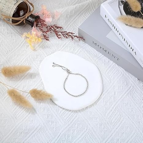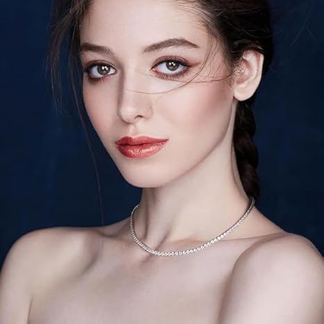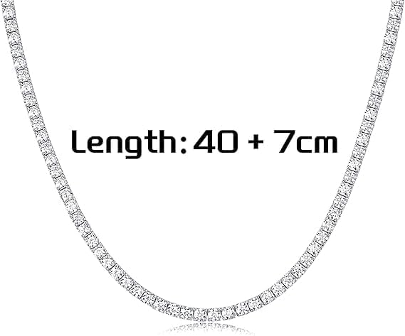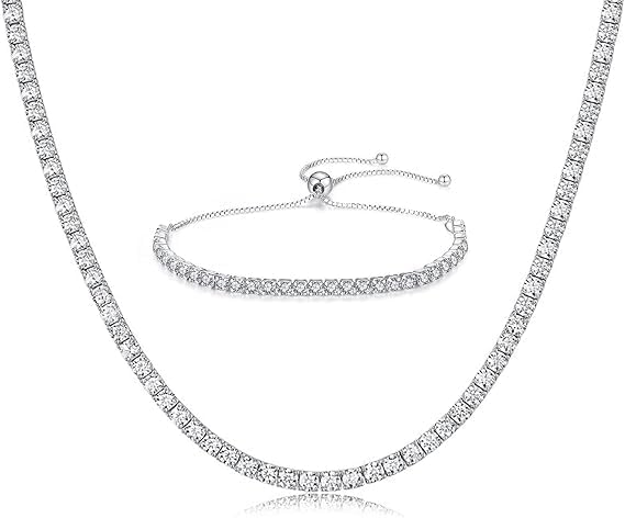 Generic - قلادة تنس من الفضة بدلاية فضية مع سوار قابل للتعديل حجر الزركونيا المكعب للنساء