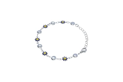 Generic - سوار مطلي بالكريستال ومينا مزين بخرز الاقحوان للنساء - فضي