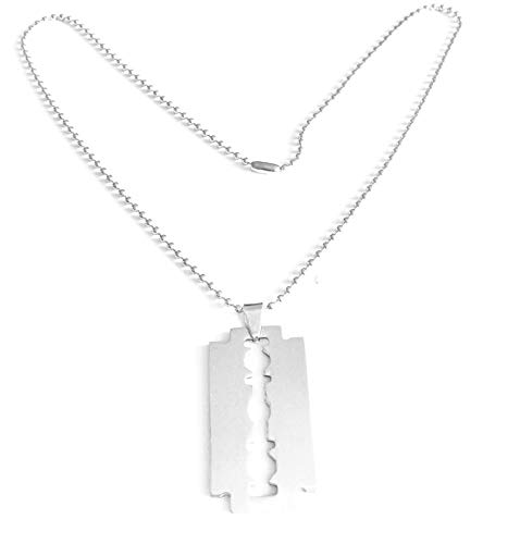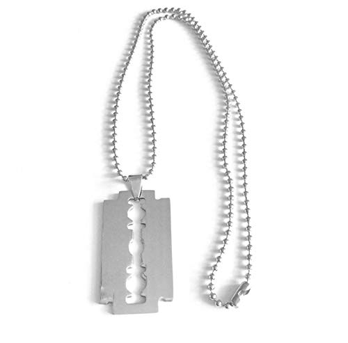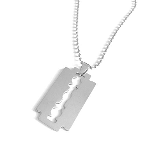 Other - عقد بدلاية من الستانلس ستيل على شكل شفرة حلاقة بتصميم بطاقة التعريف العسكرية 002 بلون فضي، للرجال