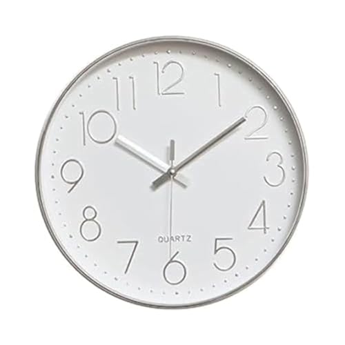 Generic - ساعة حائط فضية بخلفية بيضاء وإطار فضي، ساعة حائط دائرية حديثة تعمل بالبطارية، صامتة، لا تصدر صوت نقر، مناسبة للمكتب أو المدرسة أو المنزل (30 سم) - صغيرة