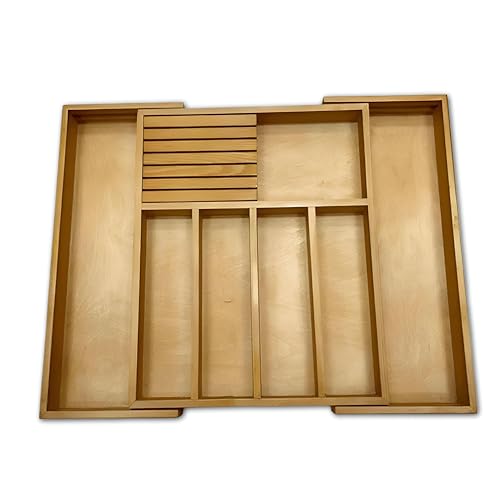 Generic - درج ادوات المائدة الفضية - منظم ادوات المائدة من الخيزران مع فواصل منزلقة، كتلة سكاكين آمنة، ومساحة مثالية لجميع انواع ادوات تناول الطعام