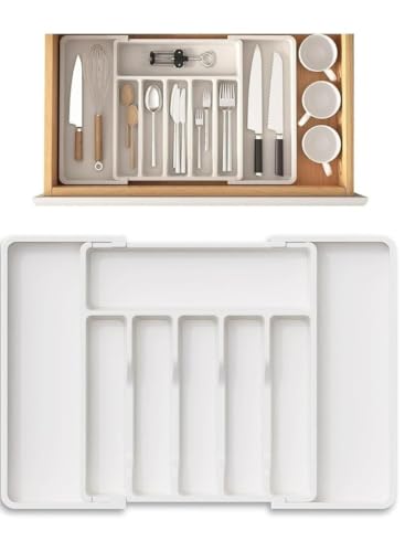 generic - منظم ادراج الفضيات، صينية ادوات مائدة قابلة للتوسيع للمطبخ، خالية من البيسفينول ايه، حامل ادوات مائدة وادوات تناول الطعام، بلاستيك قابل للتعديل
