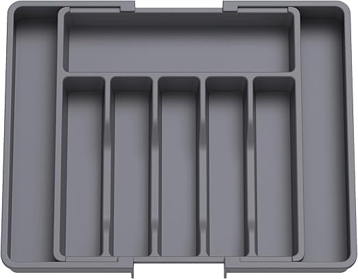 Generic - منظم ادراج الفضيات، صينية ادوات مائدة قابلة للتوسيع للمطبخ، خالية من البيسفينول ايه، تخزين بلاستيكي قابل للتعديل للملاعق والشوك والسكاكين، مقاس L، رمادي داكن