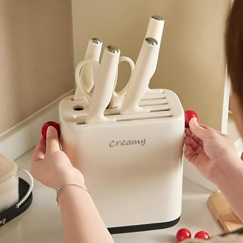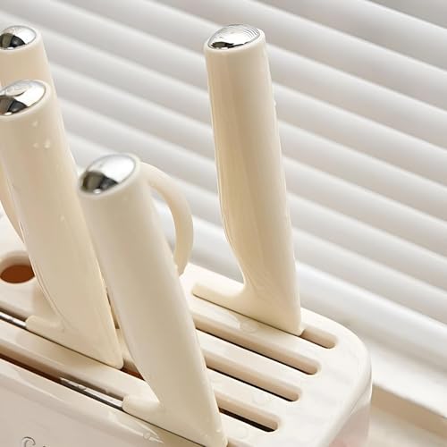 - يوفر المنتج مساحة مناسبة للسكاكين، بما في ذلك تلك ذات التصميم النحيف