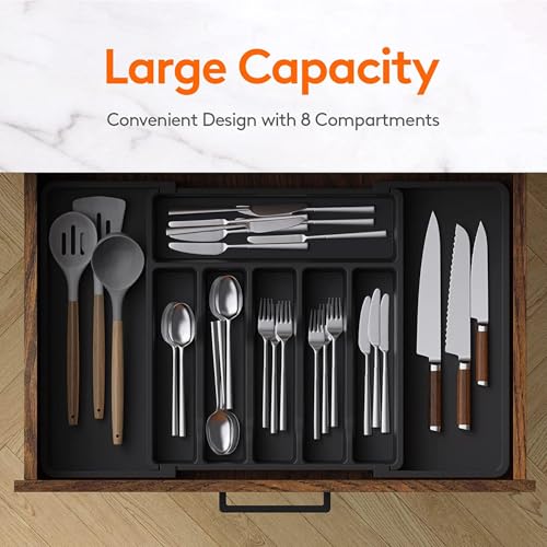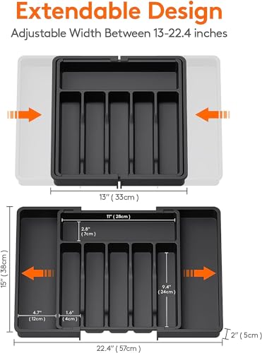 - منظم أدراج قابل للتوسيع: يمكن توسيع منظم درج المطبخ هذا ليناسب مجموعة متنوعة من الأدوات وأدوات المائدة، مما يحافظ على أدراجك أنيقة ومرتبة.
