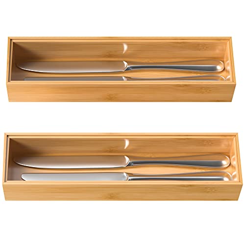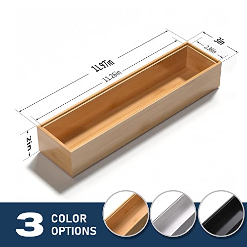 VeyFey - صينية فضية للادراج، منظم ادراج مطبخ قابل للتكديس من الخيزران مقاس 12 انش × 3 انش × 2 انش، مجموعة من قطعتين
