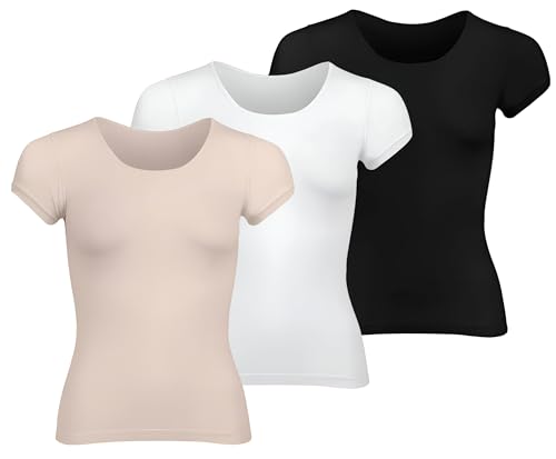 Silvy - طقم توب لوسي نصف كم برقبة دائرية للنساء مكون من 3 قطع من سيلفي
