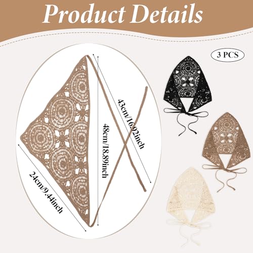simarro - أوشحة رأس مثلثة بتصميم بوهو كروشيه، أربطة رأس وأطواق شعر سادة،، سكارف رأس صيفي، باندانات شعر عصرية للنساء والبنات من سيمارو، عبوة من 3 قطع