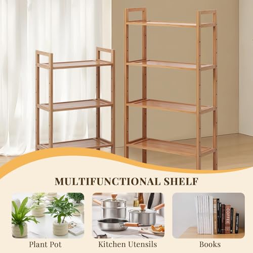 - تصميم متعدد الطبقات - تتميز أرفف الخيزران هذه بسعة كبيرة مع مواصفات من 3 طبقات/4 طبقات لتختار من بينها، ويمكن للهيكل متعدد الطبقات أن يستوعب معظم أدوات المطبخ وأدوات النظافة والكتب والنباتات وما إلى ذلك، مما يوفر مساحة تخزين وفيرة، ويجعل مساحتك أكثر أناقة وتنظيمًا، ويلبي احتياجات التخزين الخاصة بك بسهولة.