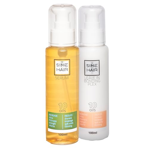 Generic - سيروم للشعر يترك الشعر-سيم هير + كريم في الترابط بسعة 100 مل لكل منهما يحتوي على 10 زيوت طبيعية وكيراتين المجعد والجاف، تركيبة للتحكم التلف، 2