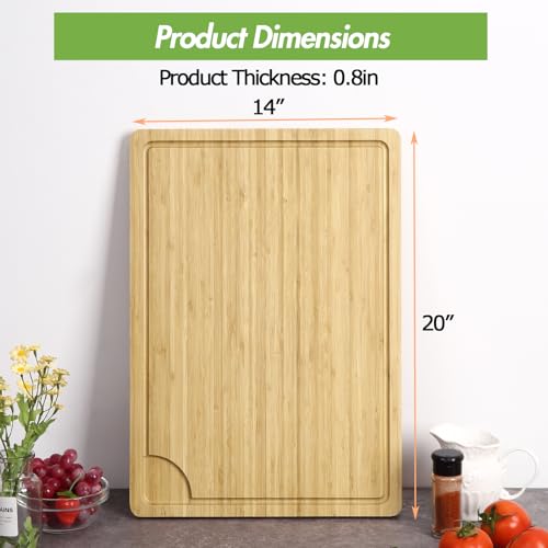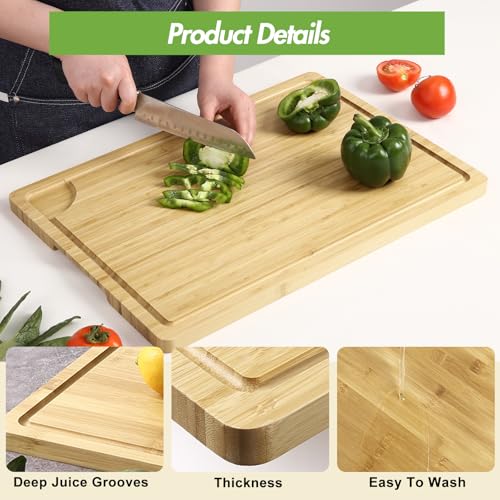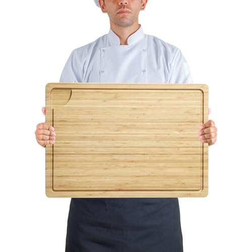 SIMOORE - لوح تقطيع خشبي كبير للغاية من الخيزران للمطبخ من سيمور، لوح تقطيع صلب مع اخدود للعصير، لوح تقطيع للحوم والخضروات والخبز، لوح خشبي كبير فوق الموقد