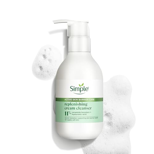 simple - كريم تجديد البشرة أكتيف سكين بارير كير للوجه من سمبل، مع معززات السيراميد بنسبة 11% وحمض الهيالورونيك والجلسرين، خالي الصابون 100%، سعة 150 مل