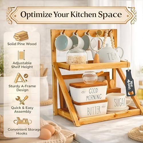 - منظم خشبي متعدد الاستخدامات مناسب لمحطات القهوة وأسطح المطبخ وعرض التوابل وتخزين البضائع الجافة.