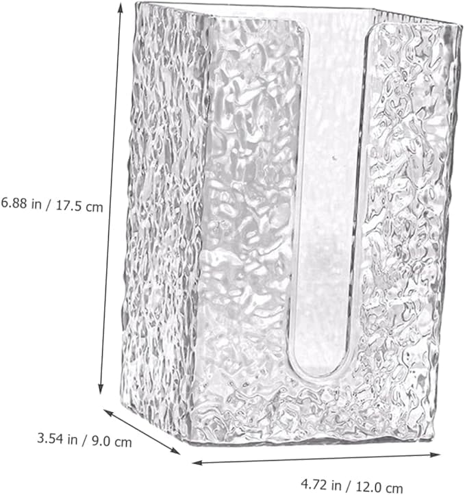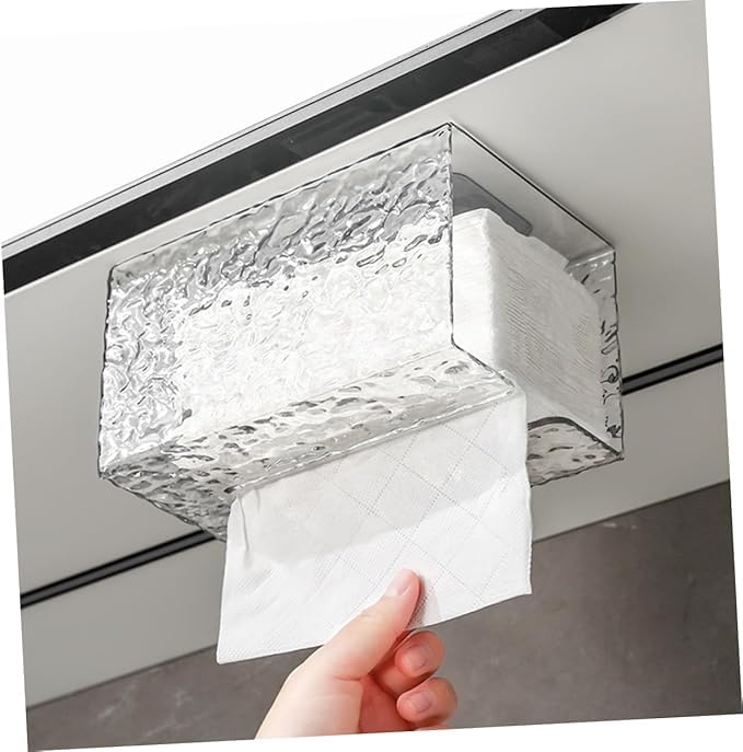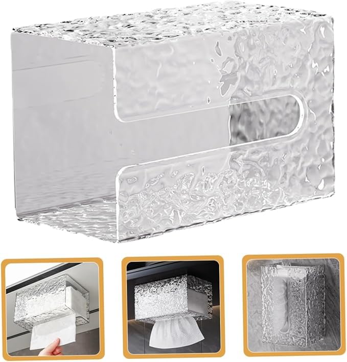 - حامل مناديل الحمام: تصميم شفاف عملي وزخرفي، يُسهّل تنظيم المناديل الورقية وحفظها، مما يجعله مناسبًا لحمل مناديل الحمام والورق الصحي.