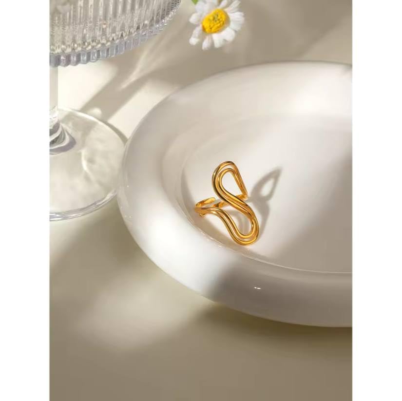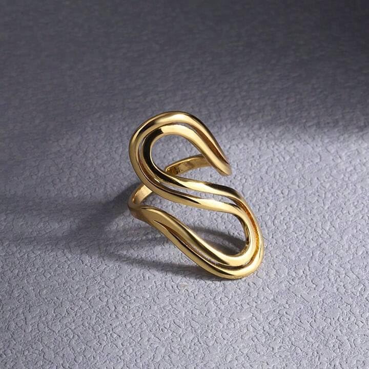 Generic - خاتم مفتوح بسيط مزدوج على شكل حرف S من الستانلس ستيل للنساء مضاد للصدأ هدية مجوهرات