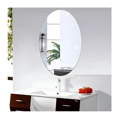 Generic - مرآة بيضاوية بسيطة بدون إطار، مثبتة على الحائط بلمسة نهائية شفافة، أبعاد 15 × 18 بوصة، مثالية لروتين جمالي بسيط وتصميم داخلي أنيق ورقه مراء