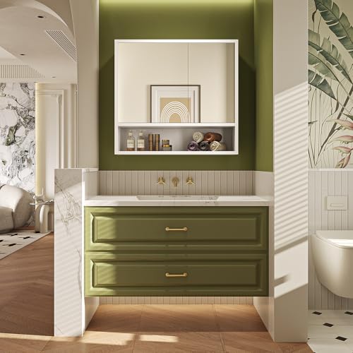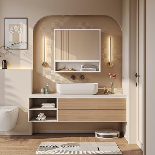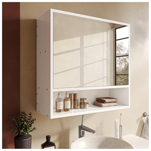 - 【تصميم خزانة الحمام】تحتوي خزانة أدوية الحمام المزودة بمراية على 3 طوابق، وكلا البابين يحتوي على مراية للحمام، كما توجد فواصل داخل أثاث الحمام لسهولة تقسيم المحتويات. يتيح لك التصميم المثبت على الحائط توفير المساحة بسهولة وهو حل التخزين المثالي الذي يمكن أن يحسن جودة حياتك بشكل كبير.